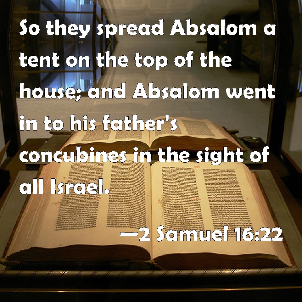 2 Samuel 16:22 So they spread Absalom a tent on the top of the house; and Absalom went in to his father's concubines in the sight of all Israel.