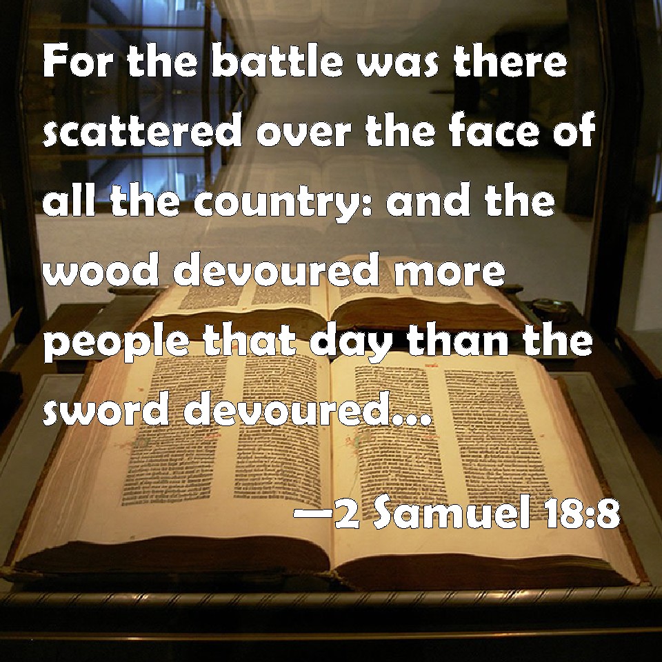 2 Samuel 18:8 For the battle was there scattered over the face of all the country: and the wood devoured more people that day than the sword devoured.