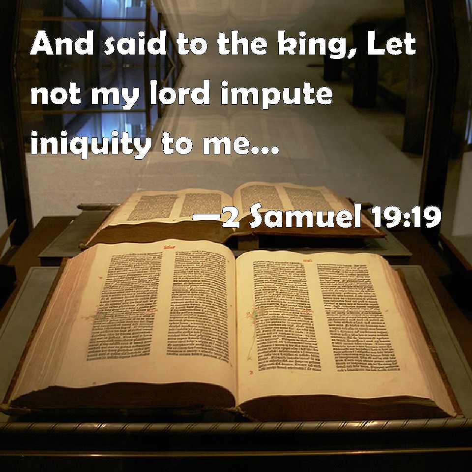 Choose a Background 2 Samuel 19:19 And said to the king, Let not my lord impute iniquity to me, neither do you remember that which your servant did perversely the day that my lord the king went out of Jerusalem, that the king should take it to his heart. KJV: And said unto the king, Let not my lord impute iniquity unto me, neither do thou remember that which thy servant did perversely the day that my lord the king went out of Jerusalem, that the king should take it to his heart. DRB: Said to him: Impute not to me, my lord, the iniquity, nor remember the injuries of thy servant on the day that thou, my lord, the king, wentest out of Jerusalem, nor lay it up in thy heart, O king. DBT: And he said to the king, Let not my lord impute iniquity to me, neither do thou remember that which thy servant did perversely the day that my lord the king went out of Jerusalem, that the king should take it to heart. ERV: And he said unto the king, Let not my lord impute iniquity unto me, neither do thou remember that which thy servant did perversely the day that my lord the king went out of Jerusalem, that the king should take it to his heart. WBT: And said to the king, Let not my lord impute iniquity to me, neither do thou remember that which thy servant did perversely the day that my lord the king went out of Jerusalem, that the king should take it to his heart. WEB: He said to the king, "Don't let my lord impute iniquity to me, neither do you remember that which your servant did perversely the day that my lord the king went out of Jerusalem, that the king should take it to his heart. YLT: and saith unto the king, 'Let not my lord impute to me iniquity; neither do thou remember that which thy servant did perversely in the day that my lord the king went out from Jerusalem, — for the king to set it unto his heart;Links 2 Samuel 19:19 NIV • 2 Samuel 19:19 NLT • 2 Samuel 19:19 ESV • 2 Samuel 19:19 NASB • 2 Samuel 19:19 KJV • 2 Samuel 19:19 Interlinear • 2 Samuel 19:19 Commentaries • 2 Samuel 19:19 Parallel Texts • 2 Samuel 19:19 Bible Apps • 2 Samuel 19:19 Parallel • Bible Hub |