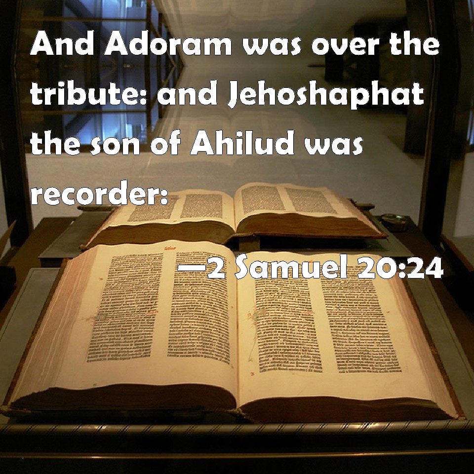 2 Samuel 20:24 And Adoram was over the tribute: and Jehoshaphat the son of Ahilud was recorder: