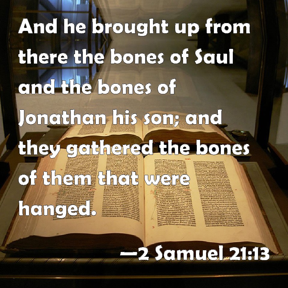 And he brought up from thence the bones of Saul and the bones of Jonathan his son; and they gathered the bones of them that were hanged.