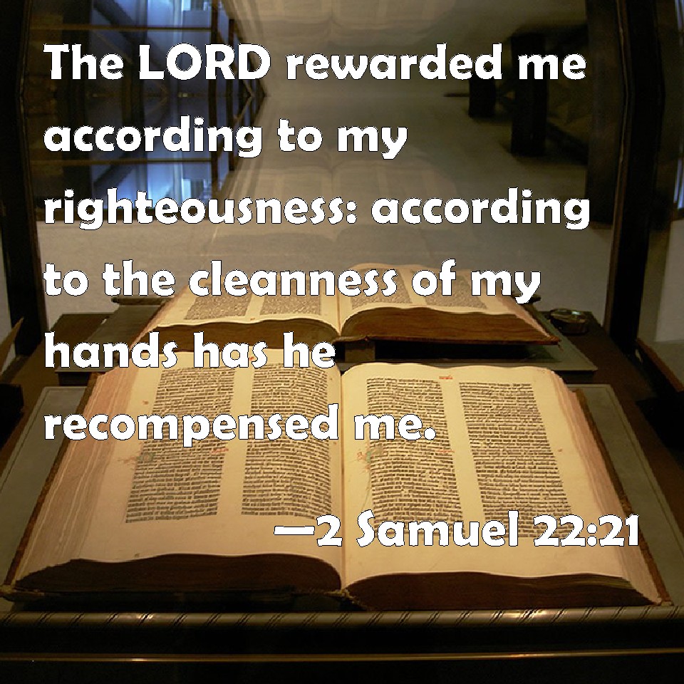 2 Samuel 22:21 The LORD rewarded me according to my righteousness: according to the cleanness of my hands has he recompensed me.