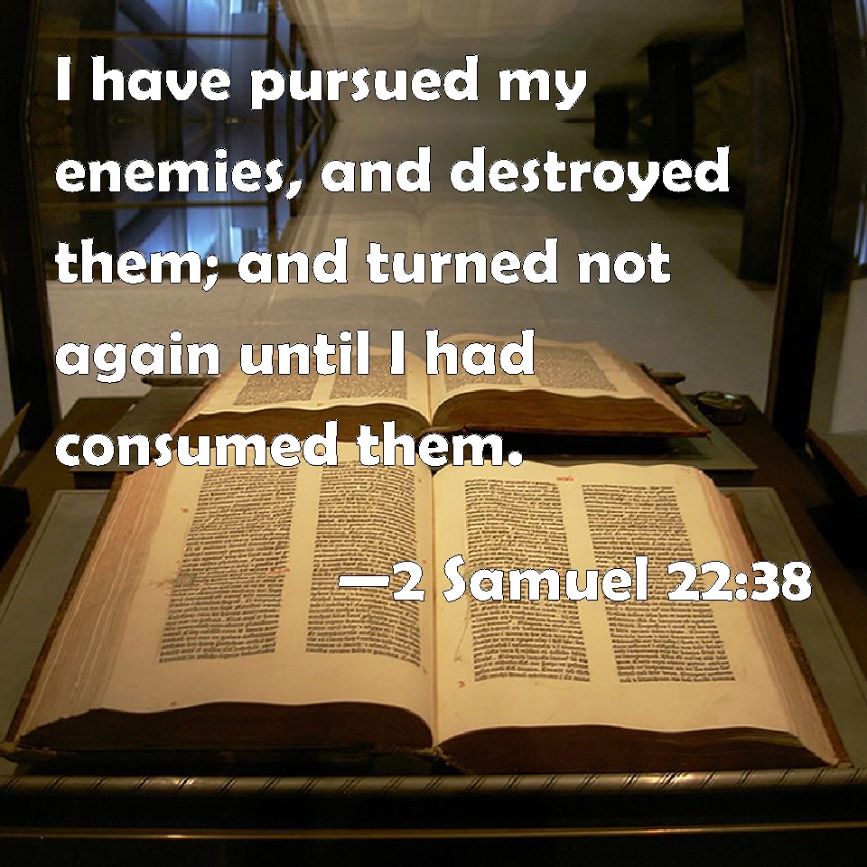 2 Samuel 22:38 I have pursued my enemies, and destroyed them; and turned not again until I had consumed them.