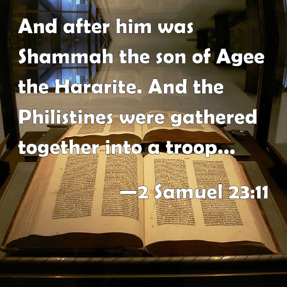 KJV:  And after him was Shammah the son of Agee the Hararite. And the Philistines were gathered together into a troop, where was a piece of ground full of lentiles: and the people fled from the Philistines.
