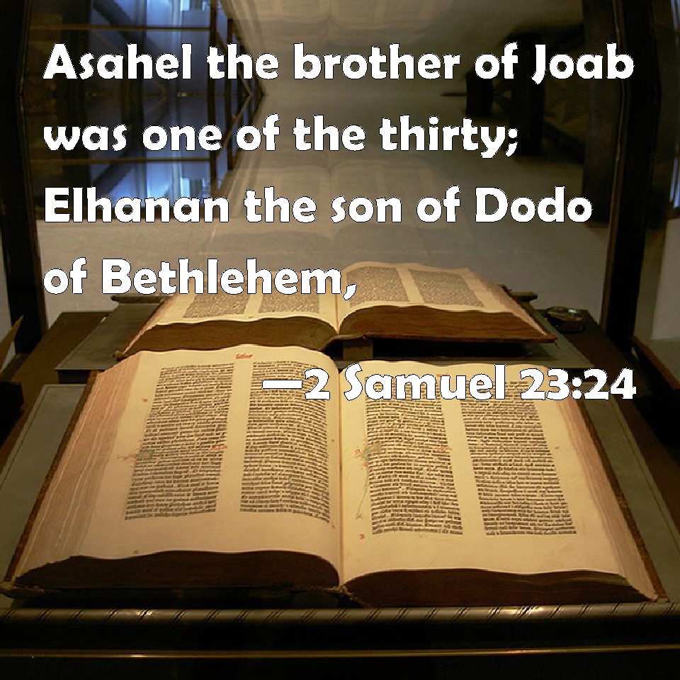 2 Samuel 23:24 Asahel the brother of Joab was one of the thirty; Elhanan the son of Dodo of Bethlehem,