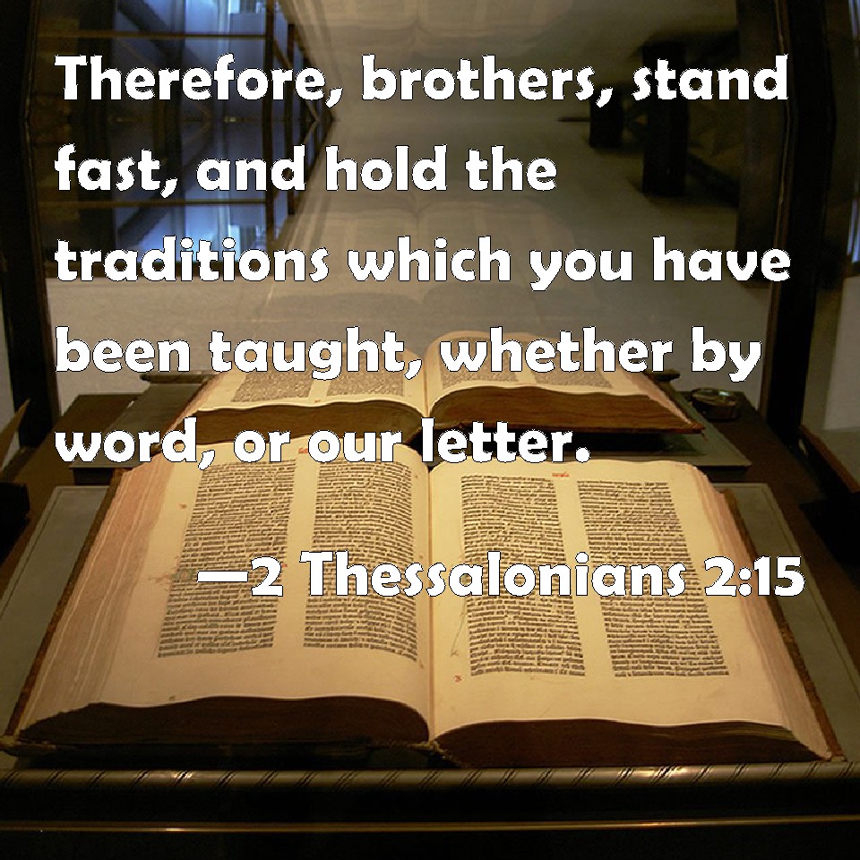 Choose a Background 2 Thessalonians 2:15 Therefore, brothers, stand fast, and hold the traditions which you have been taught, whether by word, or our letter. KJV: Therefore, brethren, stand fast, and hold the traditions which ye have been taught, whether by word, or our epistle. DRB: Therefore, brethren, stand fast; and hold the traditions which you have learned, whether by word, or by our epistle. DBT: So then, brethren, stand firm, and hold fast the instructions which ye have been taught, whether by word or by our letter. ERV: So then, brethren, stand fast, and hold the traditions which ye were taught, whether by word, or by epistle of ours. WBT: Therefore, brethren, stand fast, and hold the traditions which ye have been taught, whether by word, or our epistle. WEB: So then, brothers, stand firm, and hold the traditions which you were taught by us, whether by word, or by letter. YLT: so, then, brethren, stand ye fast, and hold the deliverances that ye were taught, whether through word, whether through our letter;Links 2 Thessalonians 2:15 NIV • 2 Thessalonians 2:15 NLT • 2 Thessalonians 2:15 ESV • 2 Thessalonians 2:15 NASB • 2 Thessalonians 2:15 KJV • 2 Thessalonians 2:15 Interlinear • 2 Thessalonians 2:15 Commentaries • 2 Thessalonians 2:15 Parallel Texts • 2 Thessalonians 2:15 Bible Apps • 2 Thessalonians 2:15 Parallel • Bible Hub |