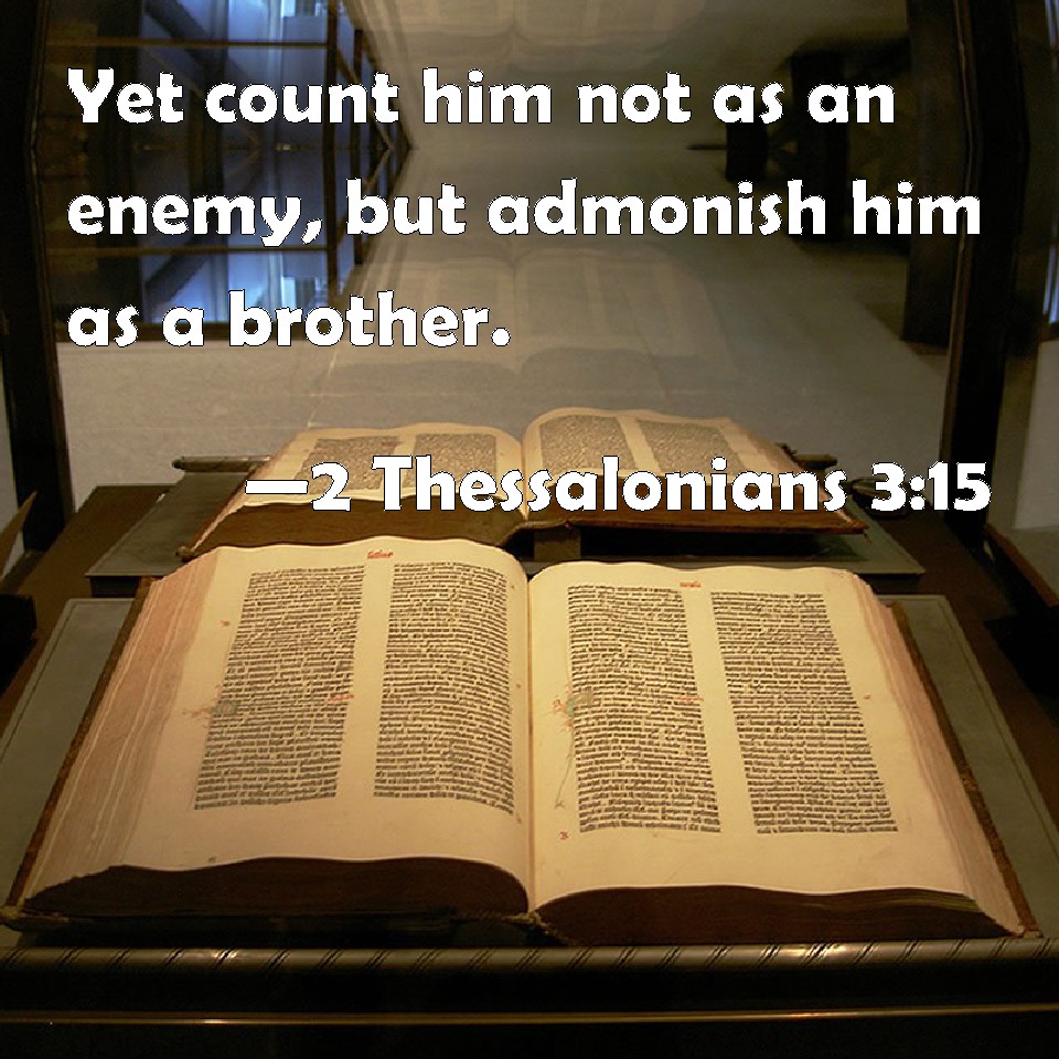 2 Thessalonians 3:15 Yet count him not as an enemy, but admonish him as a brother.