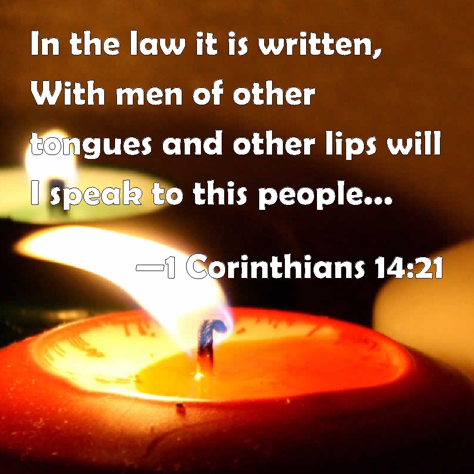 Choose a Background 1 Corinthians 14:21 In the law it is written, With men of other tongues and other lips will I speak to this people; and yet for all that will they not hear me, said the LORD. KJV: In the law it is written, With men of other tongues and other lips will I speak unto this people; and yet for all that will they not hear me, saith the Lord. DRB: In the law it is written: In other tongues and other lips I will speak to this people; and neither so will they hear me, saith the Lord. DBT: It is written in the law, By people of other tongues, and by strange lips, will I speak to this people; and neither thus will they hear me, saith the Lord. ERV: In the law it is written, By men of strange tongues and by the lips of strangers will I speak unto this people; and not even thus will they hear me, saith the Lord. WBT: In the law it is written, With men of other tongues and other lips will I speak to this people; and yet for all that will they not hear me, saith the Lord. WEB: In the law it is written, "By men of strange languages and by the lips of strangers I will speak to this people. Not even thus will they hear me, says the Lord." YLT: in the law it hath been written, that, 'With other tongues and with other lips I will speak to this people, and not even so will they hear Me, saith the Lord;'Links 1 Corinthians 14:21 NIV • 1 Corinthians 14:21 NLT • 1 Corinthians 14:21 ESV • 1 Corinthians 14:21 NASB • 1 Corinthians 14:21 KJV • 1 Corinthians 14:21 Interlinear • 1 Corinthians 14:21 Commentaries • 1 Corinthians 14:21 Parallel Texts • 1 Corinthians 14:21 Bible Apps • 1 Corinthians 14:21 Parallel • Bible Hub |