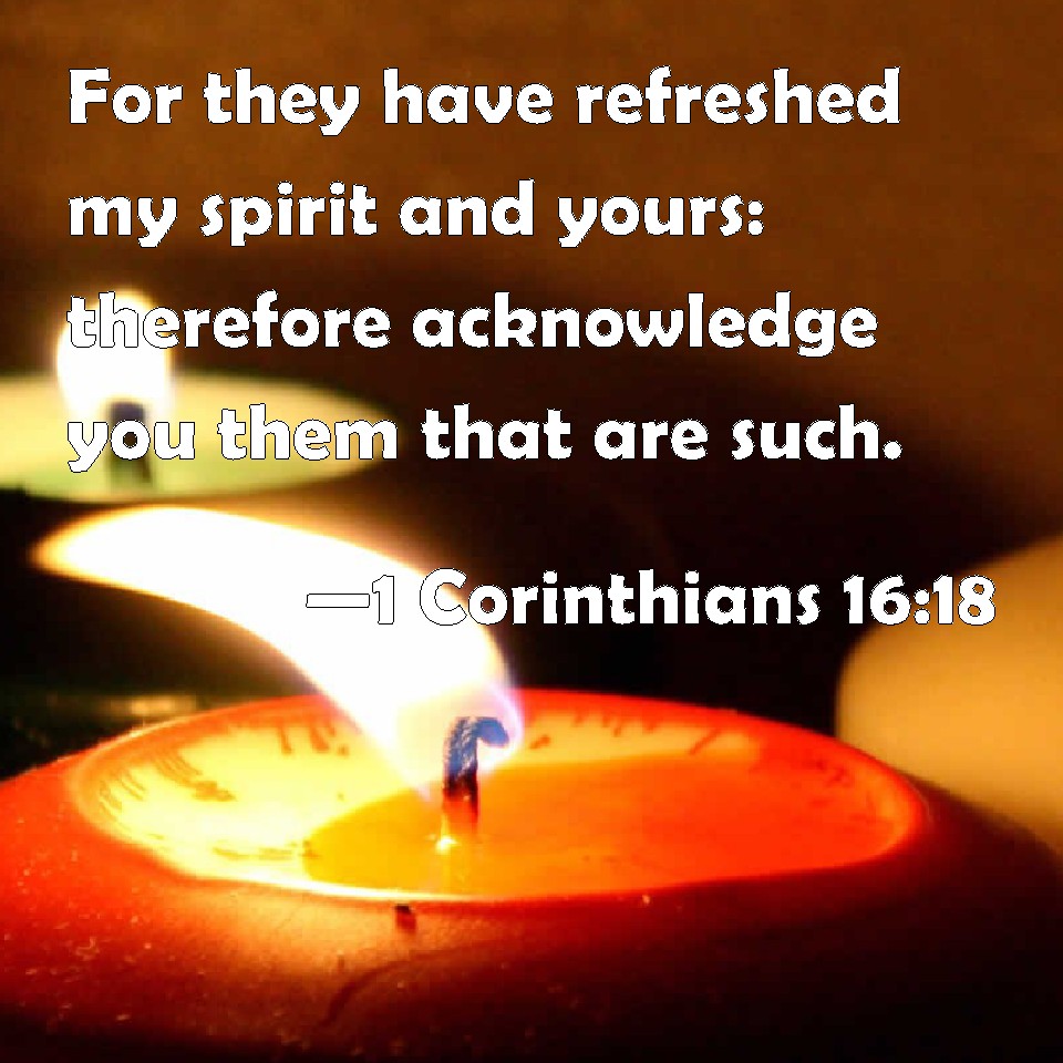 1 Corinthians 16:18 For they have refreshed my spirit and yours: therefore acknowledge you them that are such.