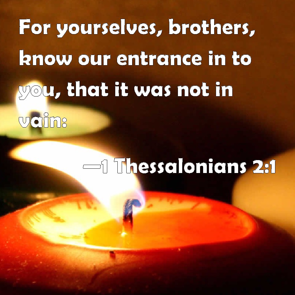 Choose a Background 1 Thessalonians 2:1 For yourselves, brothers, know our entrance in to you, that it was not in vain: KJV: For yourselves, brethren, know our entrance in unto you, that it was not in vain: DRB: For yourselves know, brethren, our entrance in unto you, that it was not in vain: DBT: For ye know yourselves, brethren, our entering in which we had to you, that it has not been in vain; ERV: For yourselves, brethren, know our entering in unto you, that it hath not been found vain: WBT: For yourselves, brethren, know our entrance to you, that it was not in vain: WEB: For you yourselves know, brothers, our visit to you wasn't in vain, YLT: For yourselves have known, brethren, our entrance in unto you, that it did not become vain,Links 1 Thessalonians 2:1 NIV • 1 Thessalonians 2:1 NLT • 1 Thessalonians 2:1 ESV • 1 Thessalonians 2:1 NASB • 1 Thessalonians 2:1 KJV • 1 Thessalonians 2:1 Interlinear • 1 Thessalonians 2:1 Commentaries • 1 Thessalonians 2:1 Parallel Texts • 1 Thessalonians 2:1 Bible Apps • 1 Thessalonians 2:1 Parallel • Bible Hub |