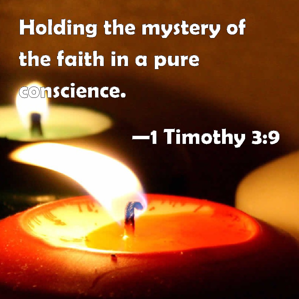 1 Timothy 3:9 Holding the mystery of the faith in a pure conscience.
