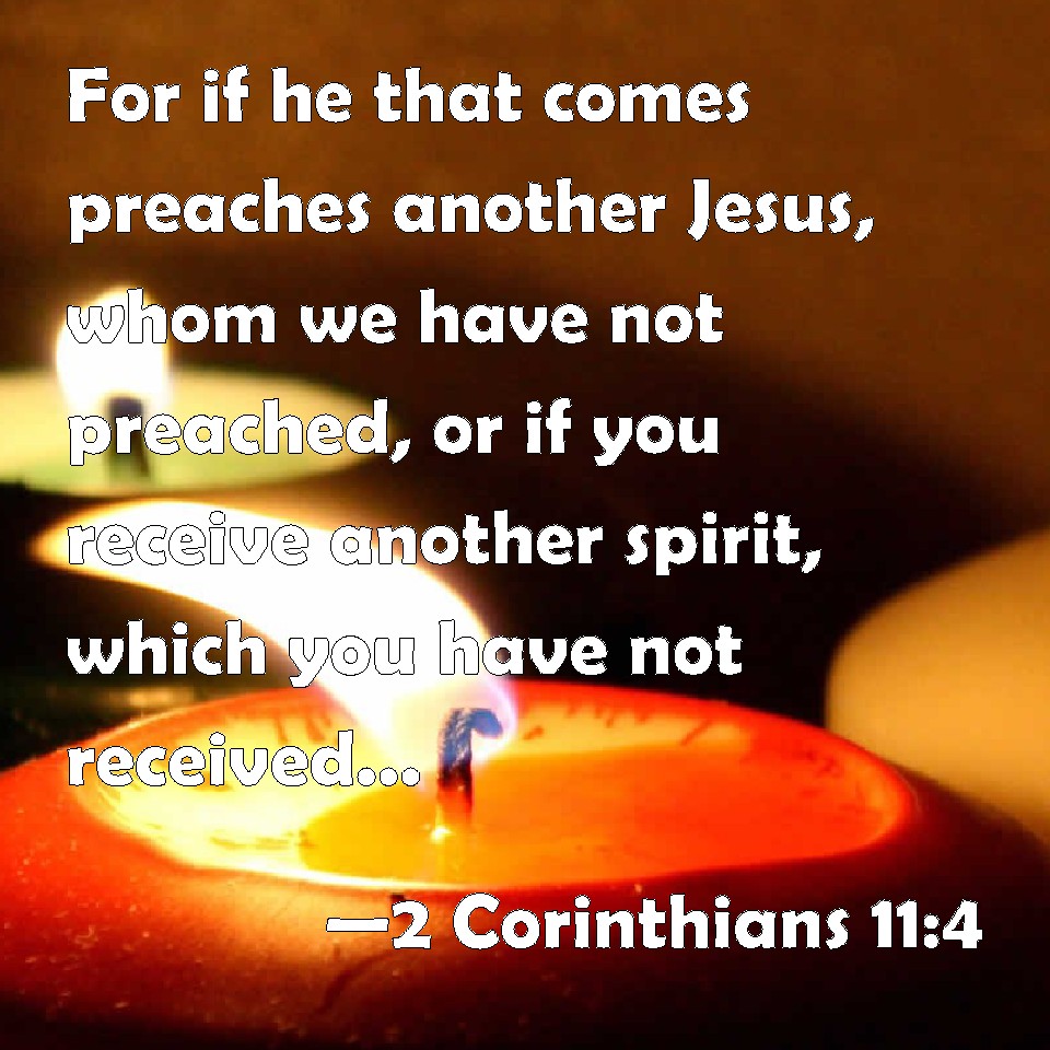 Choose a Background 2 Corinthians 11:4 For if he that comes preaches another Jesus, whom we have not preached, or if you receive another spirit, which you have not received, or another gospel, which you have not accepted, you might well bear with him. KJV: For if he that cometh preacheth another Jesus, whom we have not preached, or if ye receive another spirit, which ye have not received, or another gospel, which ye have not accepted, ye might well bear with him. DRB: For if he that cometh preacheth another Christ, whom we have not preached; or if you receive another Spirit, whom you have not received; or another gospel which you have not received; you might well bear with him. DBT: For if indeed he that comes preaches another Jesus, whom we have not preached, or ye get a different Spirit, which ye have not got, or a different glad tidings, which ye have not received, ye might well bear with it. ERV: For if he that cometh preacheth another Jesus, whom we did not preach, or if ye receive a different spirit, which ye did not receive, or a different gospel, which ye did not accept, ye do well to bear with him. WBT: For if he that cometh preacheth another Jesus, whom we have not preached, or if ye receive another spirit, which ye have not received, or another gospel, which ye have not accepted, ye might well bear with him. WEB: For if he who comes preaches another Jesus, whom we did not preach, or if you receive a different spirit, which you did not receive, or a different "good news", which you did not accept, you put up with that well enough. YLT: for if, indeed, he who is coming doth preach another Jesus whom we did not preach, or another Spirit ye receive which ye did not receive, or other good news which ye did not accept — well were ye bearing it,Links 2 Corinthians 11:4 NIV • 2 Corinthians 11:4 NLT • 2 Corinthians 11:4 ESV • 2 Corinthians 11:4 NASB • 2 Corinthians 11:4 KJV • 2 Corinthians 11:4 Interlinear • 2 Corinthians 11:4 Commentaries • 2 Corinthians 11:4 Parallel Texts • 2 Corinthians 11:4 Bible Apps • 2 Corinthians 11:4 Parallel • Bible Hub |