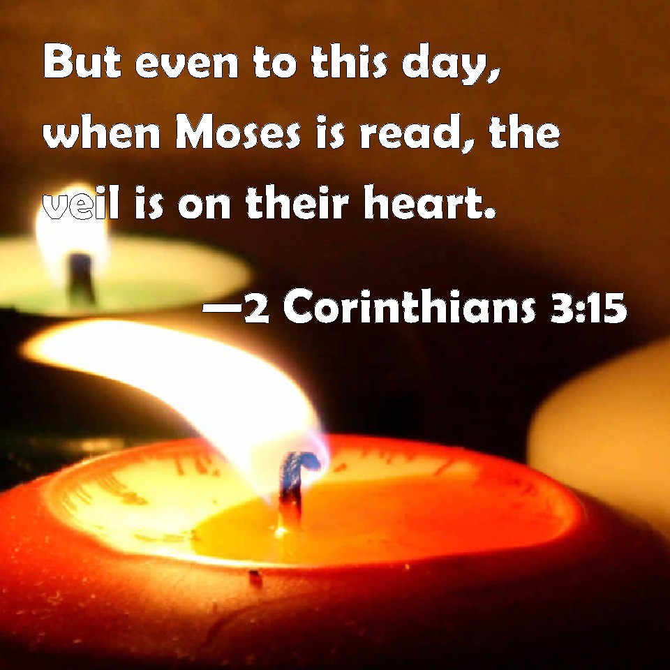 Choose a Background 2 Corinthians 3:15 But even to this day, when Moses is read, the veil is on their heart. KJV: But even unto this day, when Moses is read, the vail is upon their heart. DRB: But even until this day, when Moses is read, the veil is upon their heart. DBT: But unto this day, when Moses is read, the veil lies upon their heart. ERV: But unto this day, whensoever Moses is read, a veil lieth upon their heart. WBT: But even to this day, when Moses is read, the vail is upon their heart. WEB: But to this day, when Moses is read, a veil lies on their heart. YLT: but till to-day, when Moses is read, a vail upon their heart doth lie,Links 2 Corinthians 3:15 NIV • 2 Corinthians 3:15 NLT • 2 Corinthians 3:15 ESV • 2 Corinthians 3:15 NASB • 2 Corinthians 3:15 KJV • 2 Corinthians 3:15 Interlinear • 2 Corinthians 3:15 Commentaries • 2 Corinthians 3:15 Parallel Texts • 2 Corinthians 3:15 Bible Apps • 2 Corinthians 3:15 Parallel • Bible Hub |