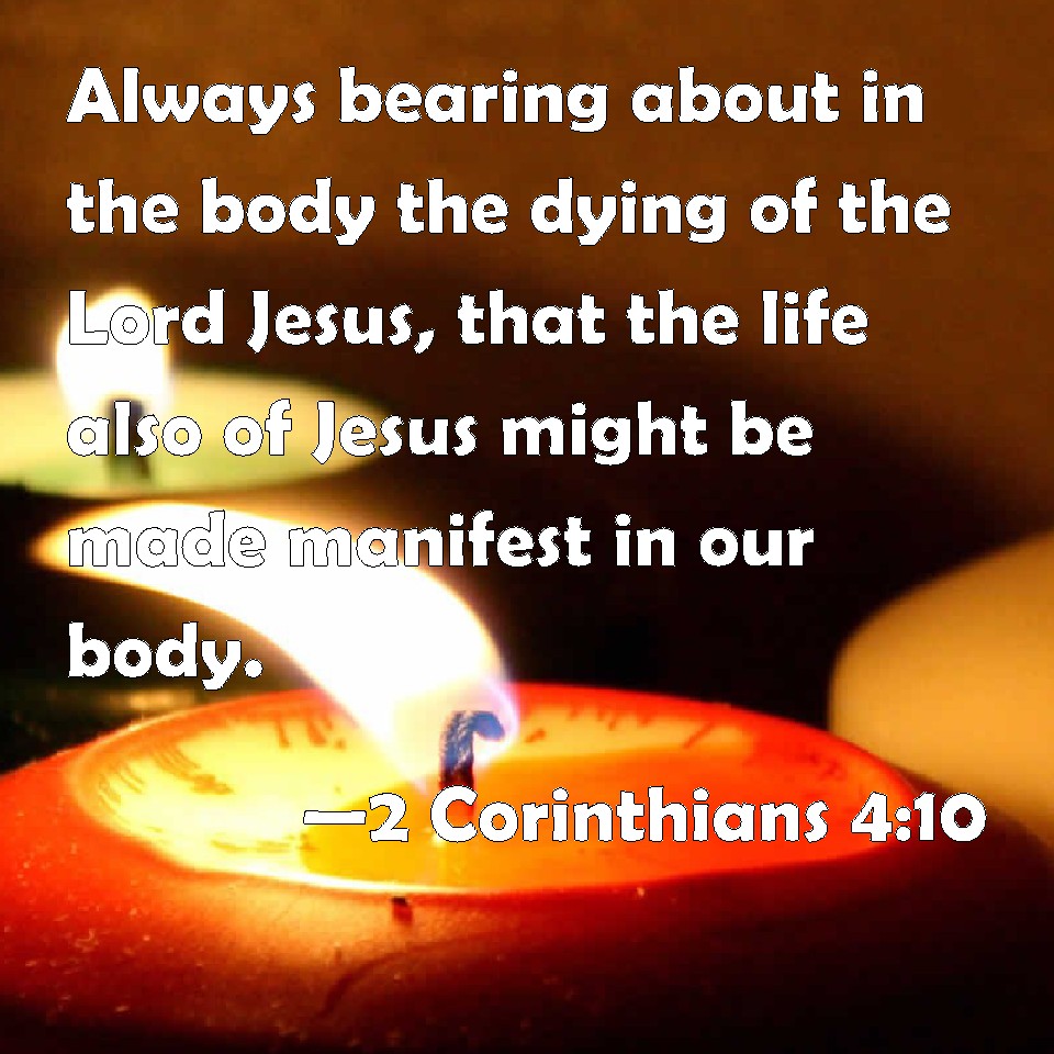 2 Corinthians 4:10 Always bearing about in the body the dying of the Lord Jesus, that the life also of Jesus might be made manifest in our body.