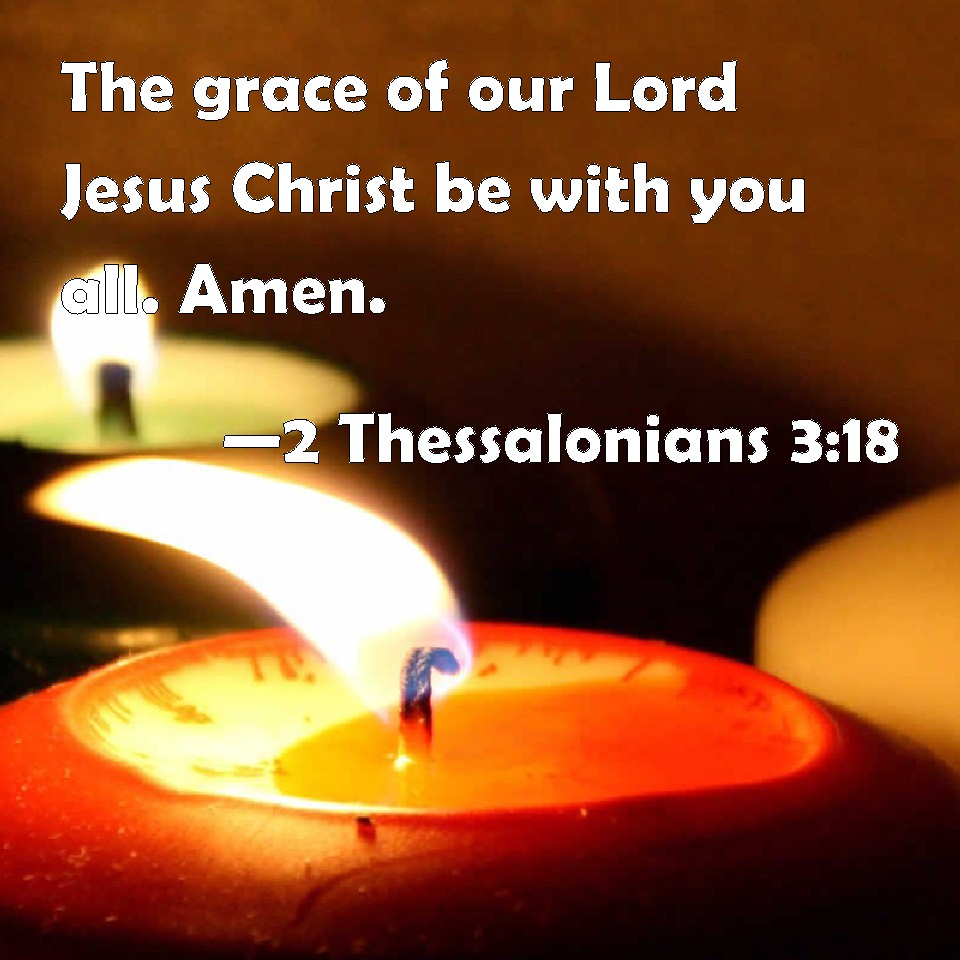 2 Thessalonians 3:18 The grace of our Lord Jesus Christ be with you all. Amen.