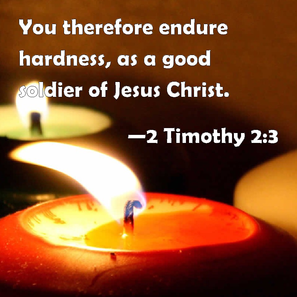 2 Timothy 2:3 You therefore endure hardness, as a good soldier of Jesus Christ.