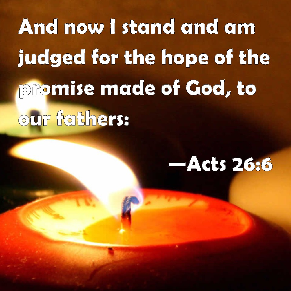 Acts 26:6 And now I stand and am judged for the hope of the promise made of God, to our fathers: