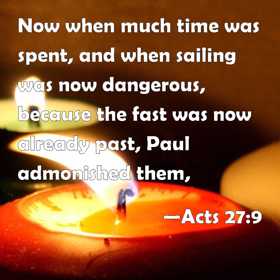 Choose a Background Acts 27:9 Now when much time was spent, and when sailing was now dangerous, because the fast was now already past, Paul admonished them, KJV: Now when much time was spent, and when sailing was now dangerous, because the fast was now already past, Paul admonished them, DRB: And when much time was spent, and when sailing now was dangerous, because the fast was now past, Paul comforted them, DBT: And much time having now been spent, and navigation being already dangerous, because the fast also was already past, Paul counselled them, ERV: And when much time was spent, and the voyage was now dangerous, because the Fast was now already gone by, Paul admonished them, WBT: Now when much time was spent, and when sailing was now dangerous, because the fast was now already past, Paul admonished them. WEB: When much time had passed and the voyage was now dangerous, because the Fast had now already gone by, Paul admonished them, YLT: And much time being spent, and the sailing being now dangerous — because of the fast also being already past — Paul was admonishing,Links Acts 27:9 NIV • Acts 27:9 NLT • Acts 27:9 ESV • Acts 27:9 NASB • Acts 27:9 KJV • Acts 27:9 Interlinear • Acts 27:9 Commentaries • Acts 27:9 Parallel Texts • Acts 27:9 Bible Apps • Acts 27:9 Parallel • Bible Hub |
