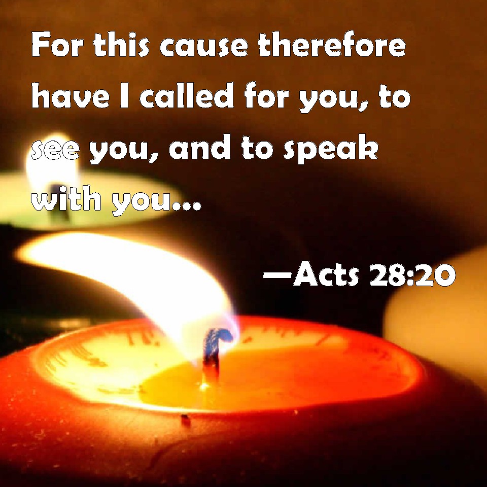 Choose a Background Acts 28:20 For this cause therefore have I called for you, to see you, and to speak with you: because that for the hope of Israel I am bound with this chain. KJV: For this cause therefore have I called for you, to see you, and to speak with you: because that for the hope of Israel I am bound with this chain. DRB: For this cause therefore I desired to see you, and to speak to you. Because that for the hope of Israel, I am bound with this chain. DBT: For this cause therefore I have called you to me to see and to speak to you; for on account of the hope of Israel I have this chain about me. ERV: For this cause therefore did I entreat you to see and to speak with me: for because of the hope of Israel I am bound with this chain. WBT: For this cause therefore have I called for you, to see you, and to speak with you: because that for the hope of Israel I am bound with this chain. WEB: For this cause therefore I asked to see you and to speak with you. For because of the hope of Israel I am bound with this chain." YLT: for this cause, therefore, I called for you to see and to speak with you, for because of the hope of Israel with this chain I am bound.'Links Acts 28:20 NIV • Acts 28:20 NLT • Acts 28:20 ESV • Acts 28:20 NASB • Acts 28:20 KJV • Acts 28:20 Interlinear • Acts 28:20 Commentaries • Acts 28:20 Parallel Texts • Acts 28:20 Bible Apps • Acts 28:20 Parallel • Bible Hub |