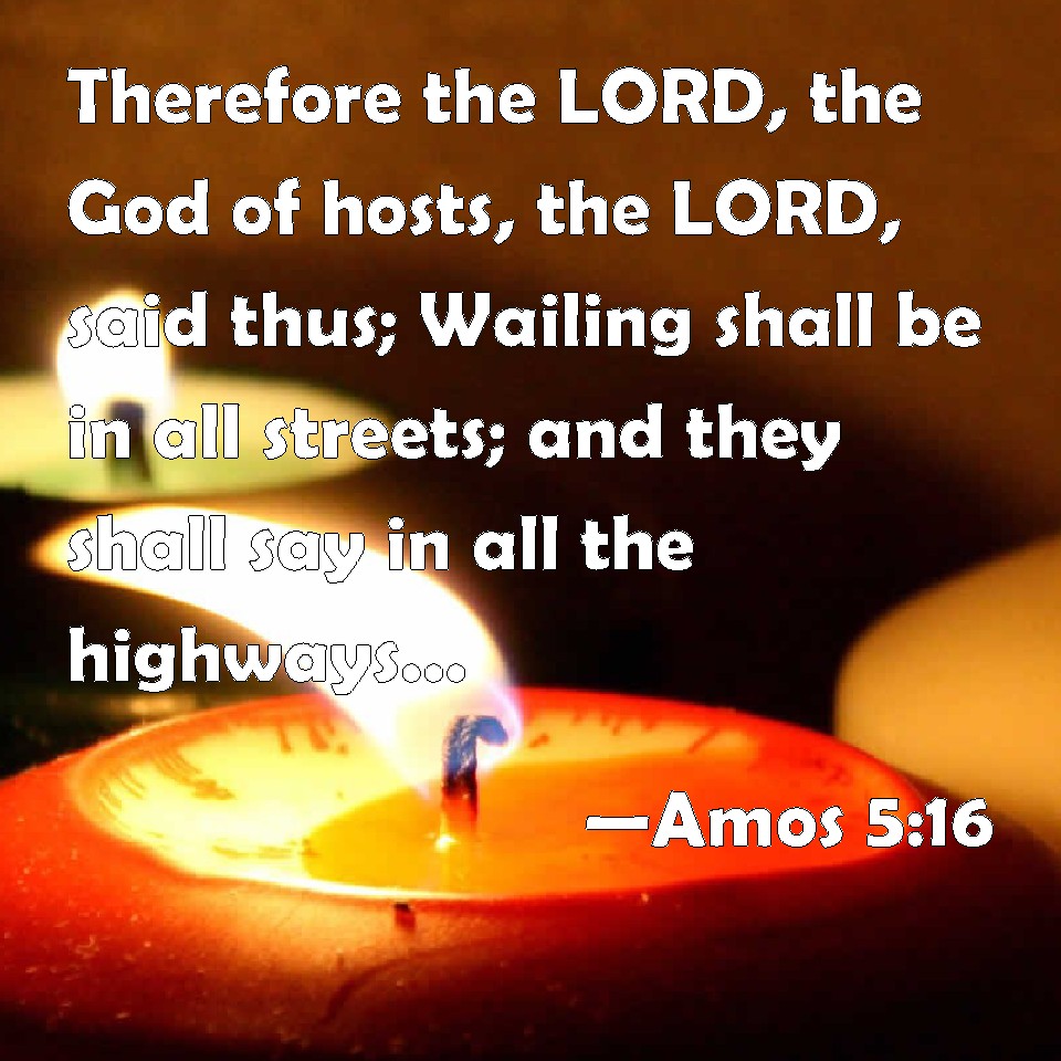 Amos 5:16 Therefore the LORD, the God of hosts, the LORD, said thus; Wailing shall be in all streets; and they shall say in all the highways, Alas! alas! and they shall call the farmer to mourning, and such as are skillful of lamentation to wailing.