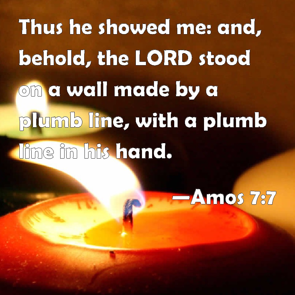Choose a Background Amos 7:7 Thus he showed me: and, behold, the LORD stood on a wall made by a plumb line, with a plumb line in his hand. KJV: Thus he shewed me: and, behold, the Lord stood upon a wall made by a plumbline, with a plumbline in his hand. DRB: These things the Lord shewed to me: and behold the Lord was standing upon a plastered wall, and in his hand a mason's trowel. DBT: Thus did he shew unto me; and behold, the Lord stood upon a wall made by a plumb-line, with a plumb-line in his hand. ERV: Thus he shewed me: and, behold, the Lord stood beside a wall made by a plumbline, with a plumbline in his hand. WBT: Thus he showed me: and behold, the Lord stood upon a wall made by a plumb-line, with a plumb-line in his hand. WEB: Thus he showed me and behold, the Lord stood beside a wall made by a plumb line, with a plumb line in his hand. YLT: Thus hath He shewed me, and lo, the Lord is standing by a wall made according to a plumb-line, and in His hand a plumb-line;Links Amos 7:7 NIV • Amos 7:7 NLT • Amos 7:7 ESV • Amos 7:7 NASB • Amos 7:7 KJV • Amos 7:7 Interlinear • Amos 7:7 Commentaries • Amos 7:7 Parallel Texts • Amos 7:7 Bible Apps • Amos 7:7 Parallel • Bible Hub |
