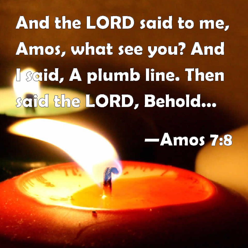 Choose a Background Amos 7:8 And the LORD said to me, Amos, what see you? And I said, A plumb line. Then said the LORD, Behold, I will set a plumb line in the middle of my people Israel: I will not again pass by them any more: KJV: And the LORD said unto me, Amos, what seest thou? And I said, A plumbline. Then said the Lord, Behold, I will set a plumbline in the midst of my people Israel: I will not again pass by them any more: DRB: And the Lord said to me: What seest thou, Amos? And I said: A mason's trowel. And the Lord said: Behold, I will lay down the trowel in the midst of my people Israel. I will plaster them over no more. DBT: And Jehovah said unto me, Amos, what seest thou? And I said, A plumb-line. And the Lord said, Behold, I will set a plumb-line in the midst of my people Israel: I will not again pass by them any more. ERV: And the LORD said unto me, Amos, what seest thou? And I said, A plumbline. Then said the Lord, Behold, I will set a plumbline in the midst of my people Israel; I will not again pass by them any more: WBT: And the LORD said to me, Amos, what seest thou? and I said, A plumb-line. Then said the Lord, Behold, I will set a plumb-line in the midst of my people Israel: I will not again pass by them any more: WEB: Yahweh said to me, "Amos, what do you see?" I said, "A plumb line." Then the Lord said, "Behold, I will set a plumb line in the midst of my people Israel. I will not again pass by them any more. YLT: and Jehovah saith unto me, 'What art thou seeing, Amos?' And I say, 'A plumb-line;' and the Lord saith: 'Lo, I am setting a plumb-line in the midst of My people Israel, I do not add any more to pass over to it.Links Amos 7:8 NIV • Amos 7:8 NLT • Amos 7:8 ESV • Amos 7:8 NASB • Amos 7:8 KJV • Amos 7:8 Interlinear • Amos 7:8 Commentaries • Amos 7:8 Parallel Texts • Amos 7:8 Bible Apps • Amos 7:8 Parallel • Bible Hub |