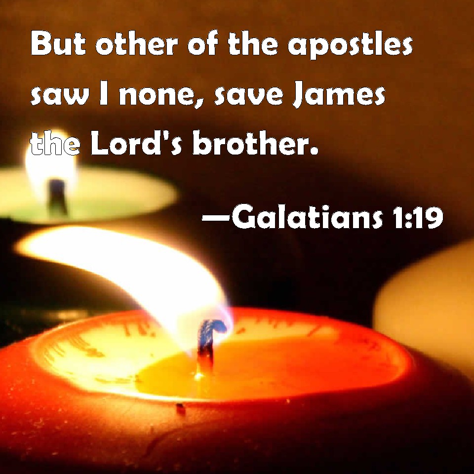 Choose a Background Galatians 1:19 But other of the apostles saw I none, save James the Lord's brother. KJV: But other of the apostles saw I none, save James the Lord's brother. DRB: But other of the apostles I saw none, saving James the brother of the Lord. DBT: but I saw none other of the apostles, but James the brother of the Lord. ERV: But other of the apostles saw I none, save James the Lord's brother. WBT: But I saw no other of the apostles, save James the Lord's brother. WEB: But of the other apostles I saw no one, except James, the Lord's brother. YLT: and other of the apostles I did not see, except James, the brother of the Lord.Links Galatians 1:19 NIV • Galatians 1:19 NLT • Galatians 1:19 ESV • Galatians 1:19 NASB • Galatians 1:19 KJV • Galatians 1:19 Interlinear • Galatians 1:19 Commentaries • Galatians 1:19 Parallel Texts • Galatians 1:19 Bible Apps • Galatians 1:19 Parallel • Bible Hub |