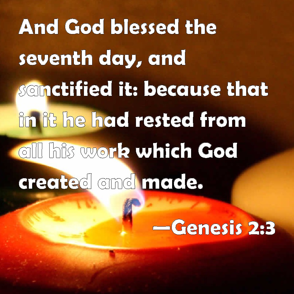 Choose a Background Genesis 2:3 And God blessed the seventh day, and sanctified it: because that in it he had rested from all his work which God created and made. KJV: And God blessed the seventh day, and sanctified it: because that in it he had rested from all his work which God created and made. DRB: And he blessed the seventh day, and sanctified it: because in it he had rested from all his work which God created and made. DBT: And God blessed the seventh day, and hallowed it, because that on it he rested from all his work which God had created in making it. ERV: And God blessed the seventh day, and hallowed it: because that in it he rested from all his work which God had created and made. WBT: And God blessed the seventh day, and sanctified it: because that in it he had rested from all his work which God created and made. WEB: God blessed the seventh day, and made it holy, because he rested in it from all his work which he had created and made. YLT: And God blesseth the seventh day, and sanctifieth it, for in it He hath ceased from all His work which God had prepared for making.Links Genesis 2:3 NIV • Genesis 2:3 NLT • Genesis 2:3 ESV • Genesis 2:3 NASB • Genesis 2:3 KJV • Genesis 2:3 Interlinear • Genesis 2:3 Commentaries • Genesis 2:3 Parallel Texts • Genesis 2:3 Bible Apps • Genesis 2:3 Parallel • Bible Hub |