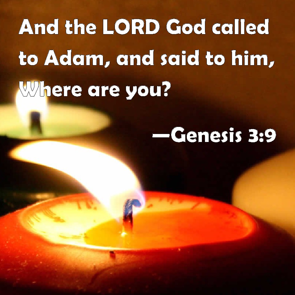 Choose a Background Genesis 3:9 And the LORD God called to Adam, and said to him, Where are you? KJV: And the LORD God called unto Adam, and said unto him, Where art thou? DRB: And the Lord God called Adam, and said to him: Where art thou? DBT: And Jehovah Elohim called to Man, and said to him, Where art thou? ERV: And the LORD God called unto the man, and said unto him, Where art thou? WBT: And the LORD God called to Adam, and said to him, Where art thou? WEB: Yahweh God called to the man, and said to him, "Where are you?" YLT: And Jehovah God calleth unto the man, and saith to him, 'Where art thou?'Links Genesis 3:9 NIV • Genesis 3:9 NLT • Genesis 3:9 ESV • Genesis 3:9 NASB • Genesis 3:9 KJV • Genesis 3:9 Interlinear • Genesis 3:9 Commentaries • Genesis 3:9 Parallel Texts • Genesis 3:9 Bible Apps • Genesis 3:9 Parallel • Bible Hub |