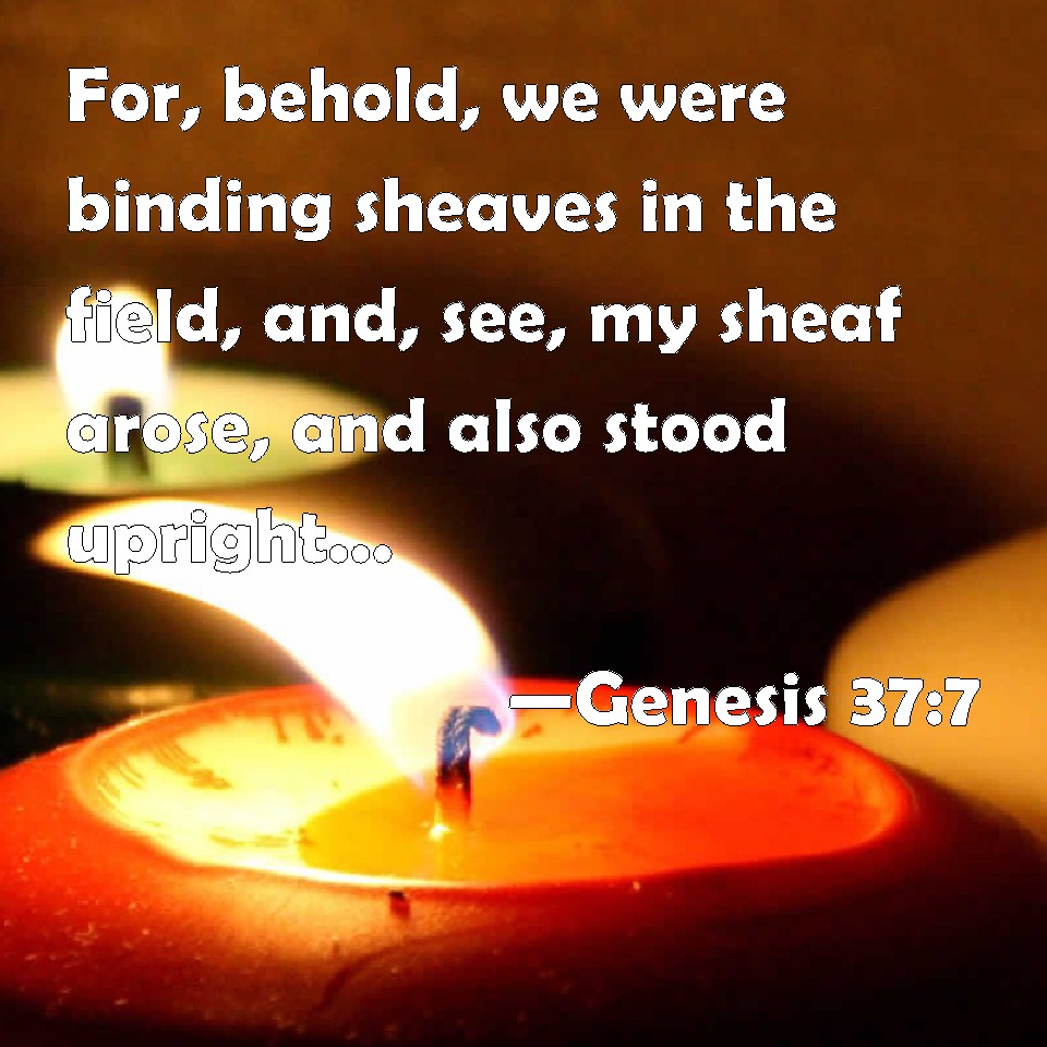 Choose a Background Genesis 37:7 For, behold, we were binding sheaves in the field, and, see, my sheaf arose, and also stood upright; and, behold, your sheaves stood round about, and made obeisance to my sheaf. KJV: For, behold, we were binding sheaves in the field, and, lo, my sheaf arose, and also stood upright; and, behold, your sheaves stood round about, and made obeisance to my sheaf. DRB: I thought we were binding sheaves in the field: and my sheaf arose as it were, end stood, and your sheaves standing about, bowed down before my sheaf. DBT: Behold, we were binding sheaves in the fields, and lo, my sheaf rose up, and remained standing; and behold, your sheaves came round about and bowed down to my sheaf. ERV: for, behold, we were binding sheaves in the field, and, lo, my sheaf arose, and also stood upright; and, behold, your sheaves came round about, and made obeisance to my sheaf. WBT: For behold, we were binding sheaves in the field, and lo, my sheaf arose, and also stood upright; and behold, your sheaves stood around and made obeisance to my sheaf. WEB: for behold, we were binding sheaves in the field, and behold, my sheaf arose and also stood upright; and behold, your sheaves came around, and bowed down to my sheaf." YLT: that, lo, we are binding bundles in the midst of the field, and lo, my bundle hath arisen, and hath also stood up, and lo, your bundles are round about, and bow themselves to my bundle.'Links Genesis 37:7 NIV • Genesis 37:7 NLT • Genesis 37:7 ESV • Genesis 37:7 NASB • Genesis 37:7 KJV • Genesis 37:7 Interlinear • Genesis 37:7 Commentaries • Genesis 37:7 Parallel Texts • Genesis 37:7 Bible Apps • Genesis 37:7 Parallel • Bible Hub |
