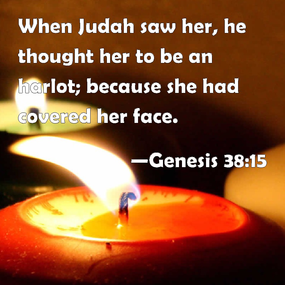 Choose a Background Genesis 38:15 When Judah saw her, he thought her to be an harlot; because she had covered her face. KJV: When Judah saw her, he thought her to be an harlot; because she had covered her face. DRB: When Juda saw her, he thought she was a harlot: for she had covered her face, lest she should be known. DBT: And Judah saw her, and took her for a harlot; because she had covered her face. ERV: When Judah saw her, he thought her to be an harlot; for she had covered her face. WBT: When Judah saw her, he thought her to be a harlot; because she had covered her face. WEB: When Judah saw her, he thought that she was a prostitute, for she had covered her face. YLT: And Judah seeth her, and reckoneth her for a harlot, for she hath covered her face,Links Genesis 38:15 NIV • Genesis 38:15 NLT • Genesis 38:15 ESV • Genesis 38:15 NASB • Genesis 38:15 KJV • Genesis 38:15 Interlinear • Genesis 38:15 Commentaries • Genesis 38:15 Parallel Texts • Genesis 38:15 Bible Apps • Genesis 38:15 Parallel • Bible Hub |