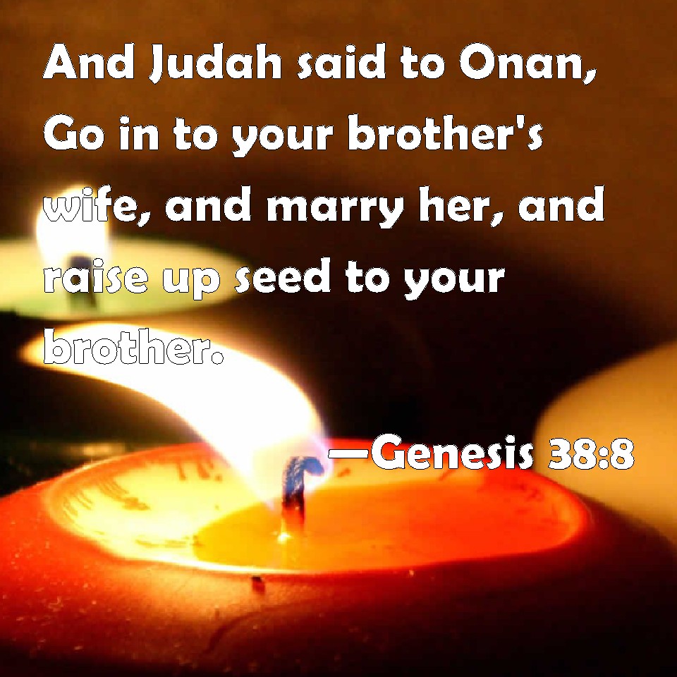 Choose a Background Genesis 38:8 And Judah said to Onan, Go in to your brother's wife, and marry her, and raise up seed to your brother. KJV: And Judah said unto Onan, Go in unto thy brother's wife, and marry her, and raise up seed to thy brother. DRB: Juda, therefore add to Onan his son: Go in to thy brother's wife and marry her, that thou mayst raise seed to thy brother. DBT: Then Judah said to Onan, Go in to thy brother's wife, and fulfil to her the brother-in-law's duty, and raise up seed to thy brother. ERV: And Judah said unto Onan, Go in unto thy brother's wife, and perform the duty of an husband's brother unto her, and raise up seed to thy brother. WBT: And Judah said to Onan, Go in to thy brother's wife, and marry her, and raise up seed to thy brother. WEB: Judah said to Onan, "Go in to your brother's wife, and perform the duty of a husband's brother to her, and raise up seed to your brother." YLT: And Judah saith to Onan, 'Go in unto the wife of thy brother, and marry her, and raise up seed to thy brother;'Links Genesis 38:8 NIV • Genesis 38:8 NLT • Genesis 38:8 ESV • Genesis 38:8 NASB • Genesis 38:8 KJV • Genesis 38:8 Interlinear • Genesis 38:8 Commentaries • Genesis 38:8 Parallel Texts • Genesis 38:8 Bible Apps • Genesis 38:8 Parallel • Bible Hub |