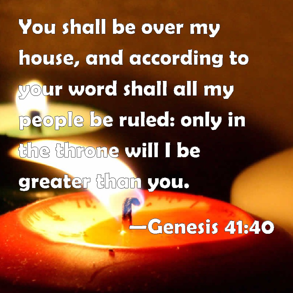 Genesis 41:40 You shall be over my house, and according to your word shall all my people be ruled: only in the throne will I be greater than you.