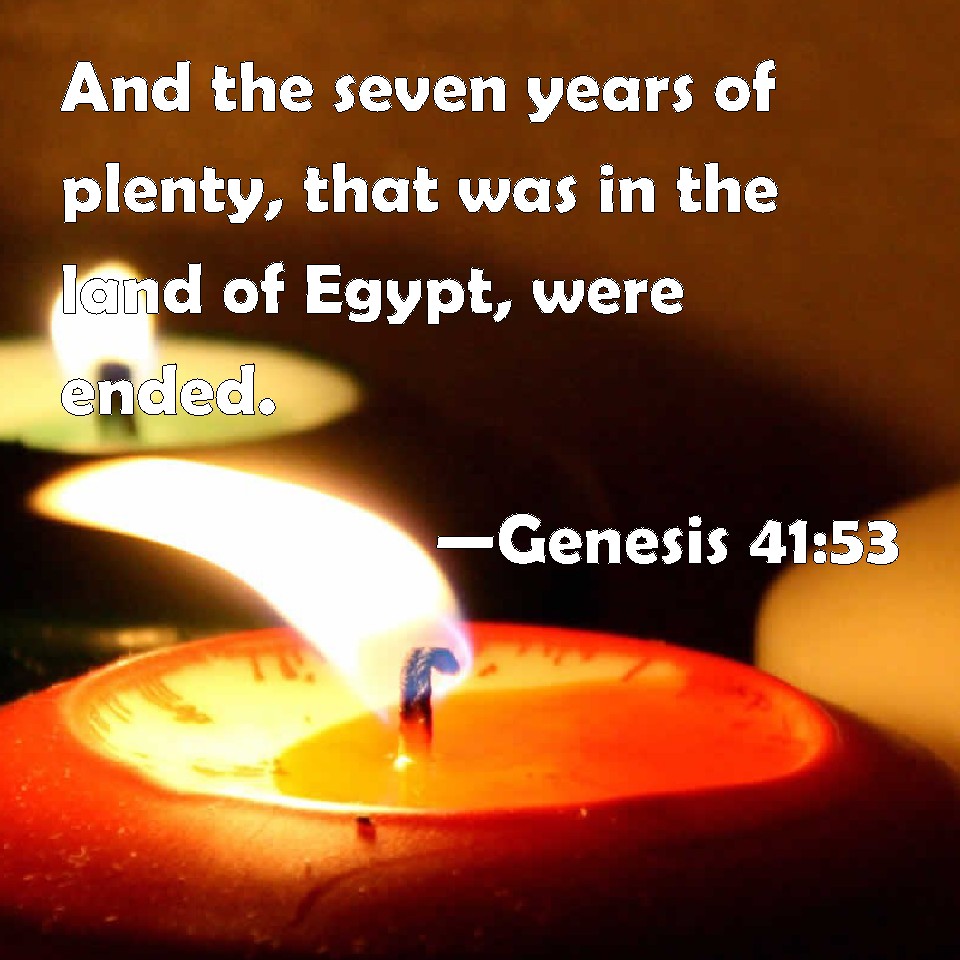 Choose a Background Genesis 41:53 And the seven years of plenty, that was in the land of Egypt, were ended. KJV: And the seven years of plenteousness, that was in the land of Egypt, were ended. DRB: Now when the seven years of the plenty that had been in Egypt were past: DBT: And the seven years of plenty that were in the land of Egypt were ended; ERV: And the seven years of plenty, that was in the land of Egypt, came to an end. WBT: And the seven years of plenteousness that was in the land of Egypt, were ended. WEB: The seven years of plenty, that were in the land of Egypt, came to an end. YLT: And the seven years of plenty are completed which have been in the land of Egypt,Links Genesis 41:53 NIV • Genesis 41:53 NLT • Genesis 41:53 ESV • Genesis 41:53 NASB • Genesis 41:53 KJV • Genesis 41:53 Interlinear • Genesis 41:53 Commentaries • Genesis 41:53 Parallel Texts • Genesis 41:53 Bible Apps • Genesis 41:53 Parallel • Bible Hub |