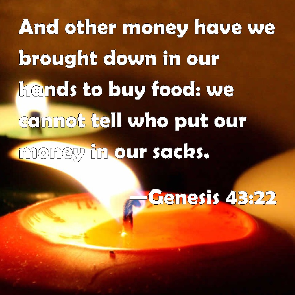 Genesis 43:22 And other money have we brought down in our hands to buy food: we cannot tell who put our money in our sacks.