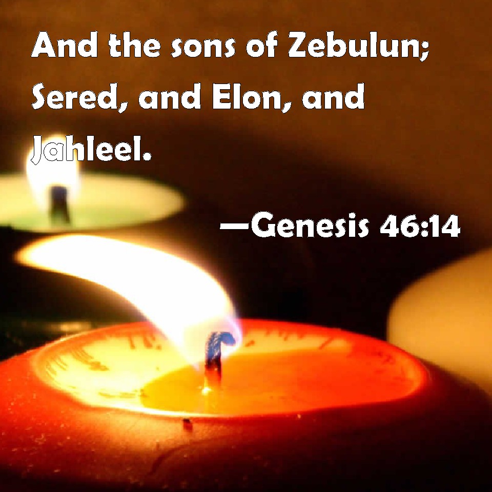 Choose a Background Genesis 46:14 And the sons of Zebulun; Sered, and Elon, and Jahleel. KJV: And the sons of Zebulun; Sered, and Elon, and Jahleel. DRB: The sons of Zabulon: Sared and Elo and Jahelel. DBT: And the sons of Zebulun: Sered, And Elon, And Jahleel. ERV: And the sons of Zebulun; Sered, and Elon, and Jahleel. WBT: And the sons of Zebulun; Sered, and Elon, and Jahleel. WEB: The sons of Zebulun: Sered, Elon, and Jahleel. YLT: And sons of Zebulun: Sered, and Elon, and Jahleel.Links Genesis 46:14 NIV • Genesis 46:14 NLT • Genesis 46:14 ESV • Genesis 46:14 NASB • Genesis 46:14 KJV • Genesis 46:14 Interlinear • Genesis 46:14 Commentaries • Genesis 46:14 Parallel Texts • Genesis 46:14 Bible Apps • Genesis 46:14 Parallel • Bible Hub |
