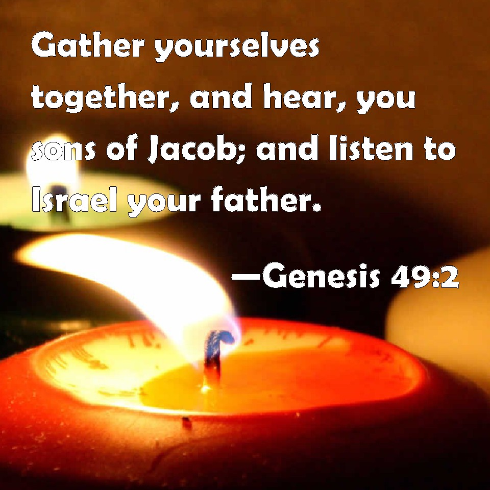 Choose a Background Genesis 49:2 Gather yourselves together, and hear, you sons of Jacob; and listen to Israel your father. KJV: Gather yourselves together, and hear, ye sons of Jacob; and hearken unto Israel your father. DRB: Gather yourselves together, and hear, O ye sons of Jacob, hearken to Israel your father: DBT: Assemble yourselves, and hear, ye sons of Jacob, And listen to Israel your father. ERV: Assemble yourselves, and hear, ye sons of Jacob; And hearken unto Israel your father. WBT: Assemble yourselves, and hear, ye sons of Jacob: and hearken to Israel your father. WEB: Assemble yourselves, and hear, you sons of Jacob. Listen to Israel, your father. YLT: 'Be assembled, and hear, sons of Jacob, And hearken unto Israel your father.Links Genesis 49:2 NIV • Genesis 49:2 NLT • Genesis 49:2 ESV • Genesis 49:2 NASB • Genesis 49:2 KJV • Genesis 49:2 Interlinear • Genesis 49:2 Commentaries • Genesis 49:2 Parallel Texts • Genesis 49:2 Bible Apps • Genesis 49:2 Parallel • Bible Hub |
