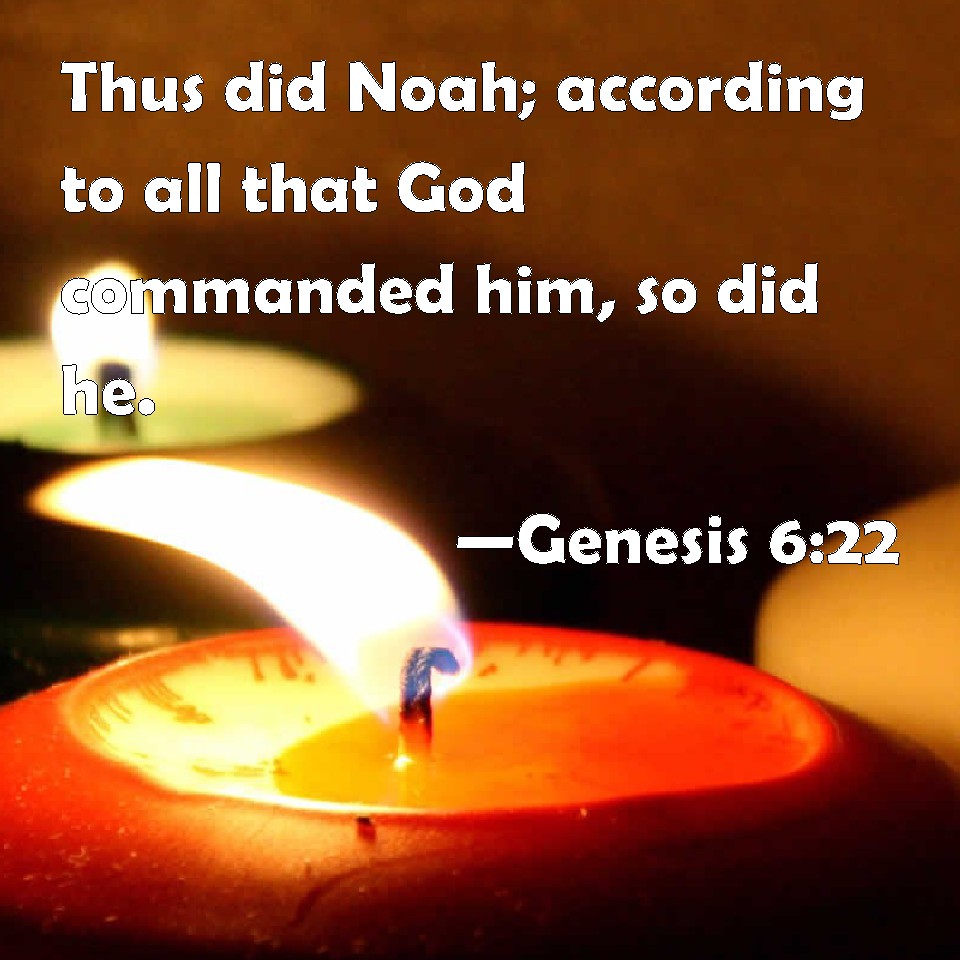 Genesis 6:22 Thus did Noah; according to all that God commanded him, so did he.