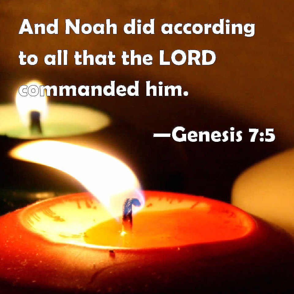 Genesis 7:5 And Noah did according to all that the LORD commanded him.
