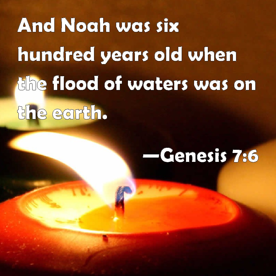 Genesis 7:6 And Noah was six hundred years old when the flood of waters was on the earth.