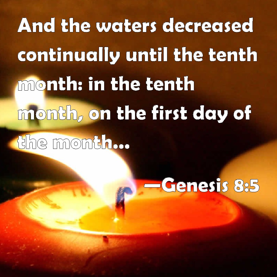 Choose a Background Genesis 8:5 And the waters decreased continually until the tenth month: in the tenth month, on the first day of the month, were the tops of the mountains seen. KJV: And the waters decreased continually until the tenth month: in the tenth month, on the first day of the month, were the tops of the mountains seen. DRB: And the waters were going and decreasing until the tenth month: for in the tenth month, the first day of the month, the tops of the mountains appeared. DBT: And the waters abated continually until the tenth month: in the tenth month, on the first of the month, the tops of the mountains were seen. ERV: And the waters decreased continually until the tenth month: in the tenth month, on the first day of the month, were the tops of the mountains seen. WBT: And the waters decreased continually, till the tenth month: in the tenth month, on the first day of the month, were the tops of the mountains seen. WEB: The waters receded continually until the tenth month. In the tenth month, on the first day of the month, the tops of the mountains were seen. YLT: and the waters have been going and becoming lacking till the tenth month; in the tenth month, on the first of the month, appeared the heads of the mountains.Links Genesis 8:5 NIV • Genesis 8:5 NLT • Genesis 8:5 ESV • Genesis 8:5 NASB • Genesis 8:5 KJV • Genesis 8:5 Interlinear • Genesis 8:5 Commentaries • Genesis 8:5 Parallel Texts • Genesis 8:5 Bible Apps • Genesis 8:5 Parallel • Bible Hub |