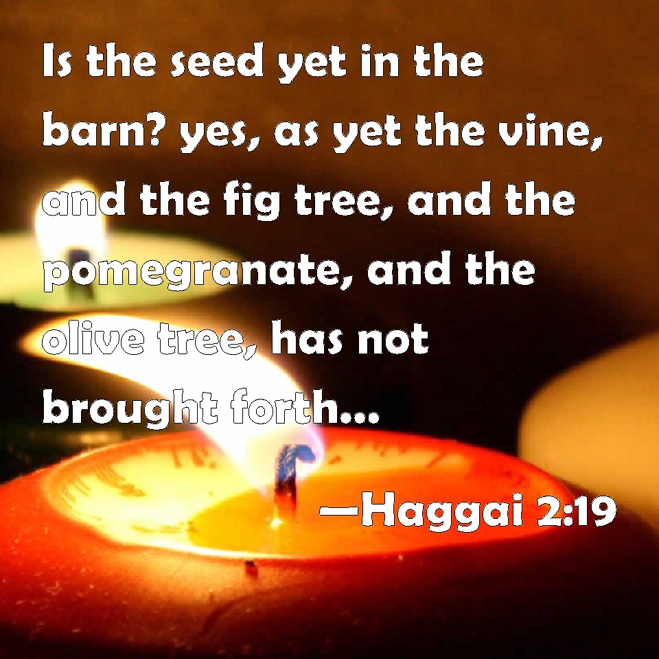 Haggai 2:19 Is the seed yet in the barn? yes, as yet the vine, and the fig tree, and the pomegranate, and the olive tree, has not brought forth: from this day will I bless you.