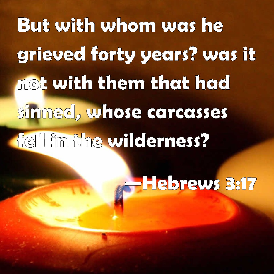 Hebrews 3:17 But with whom was he grieved forty years? was it not with them that had sinned, whose carcasses fell in the wilderness?