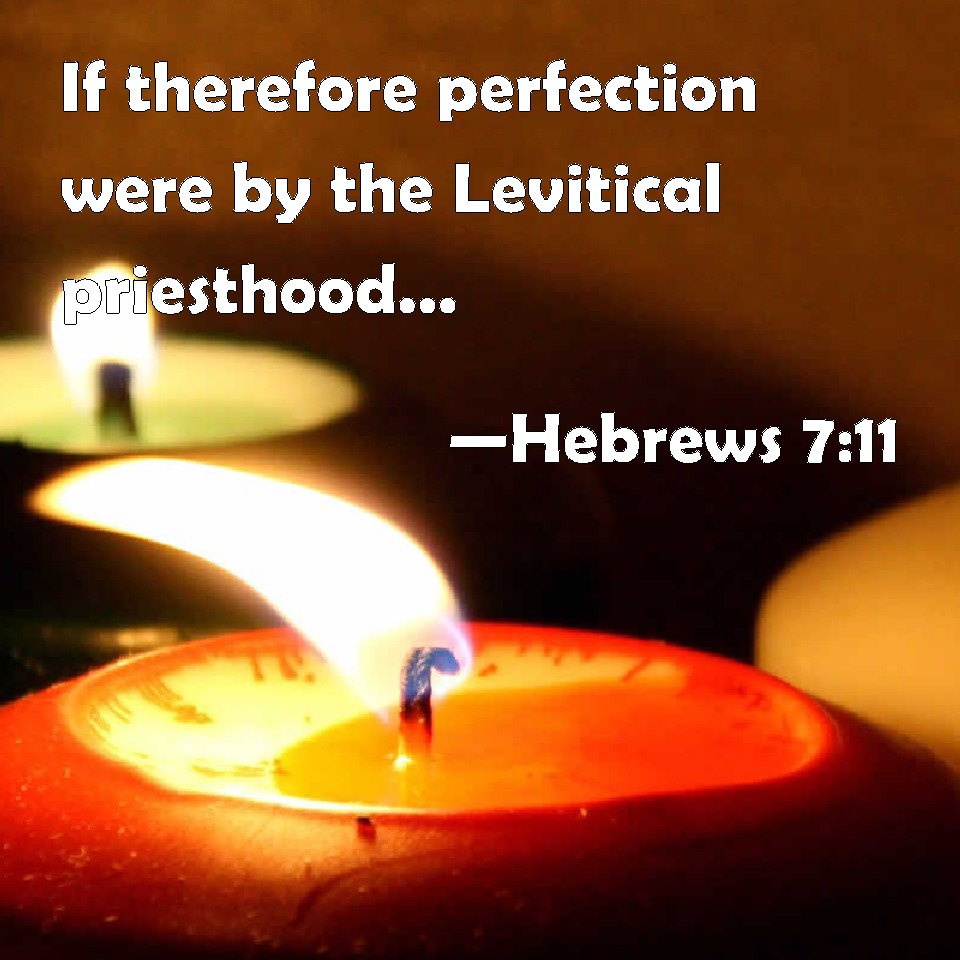 Choose a Background Hebrews 7:11 If therefore perfection were by the Levitical priesthood, (for under it the people received the law,) what further need was there that another priest should rise after the order of Melchisedec, and not be called after the order of Aaron? KJV: If therefore perfection were by the Levitical priesthood, (for under it the people received the law,) what further need was there that another priest should rise after the order of Melchisedec, and not be called after the order of Aaron? DRB: If then perfection was by the Levitical priesthood, (for under it the people received the law,) what further need was there that another priest should rise according to the order of Melchisedech, and not be called according to the order of Aaron? DBT: If indeed then perfection were by the Levitical priesthood, for the people had their law given to them in connexion with it, what need was there still that a different priest should arise according to the order of Melchisedec, and not be named after the order of Aaron? ERV: Now if there was perfection through the Levitical priesthood (for under it hath the people received the law), what further need was there that another priest should arise after the order of Melchizedek, and not be reckoned after the order of Aaron? WBT: If therefore perfection were by the Levitical priesthood (for under it the people received the law) what further need was there that another priest should rise after the order of Melchisedec, and not be called after the order of Aaron? WEB: Now if there was perfection through the Levitical priesthood (for under it the people have received the law), what further need was there for another priest to arise after the order of Melchizedek, and not be called after the order of Aaron? YLT: If indeed, then, perfection were through the Levitical priesthood — for the people under it had received law — what further need, according to the order of Melchisedek, for another priest to arise, and not to be called according to the order of Aaron?Links Hebrews 7:11 NIV • Hebrews 7:11 NLT • Hebrews 7:11 ESV • Hebrews 7:11 NASB • Hebrews 7:11 KJV • Hebrews 7:11 Interlinear • Hebrews 7:11 Commentaries • Hebrews 7:11 Parallel Texts • Hebrews 7:11 Bible Apps • Hebrews 7:11 Parallel • Bible Hub |