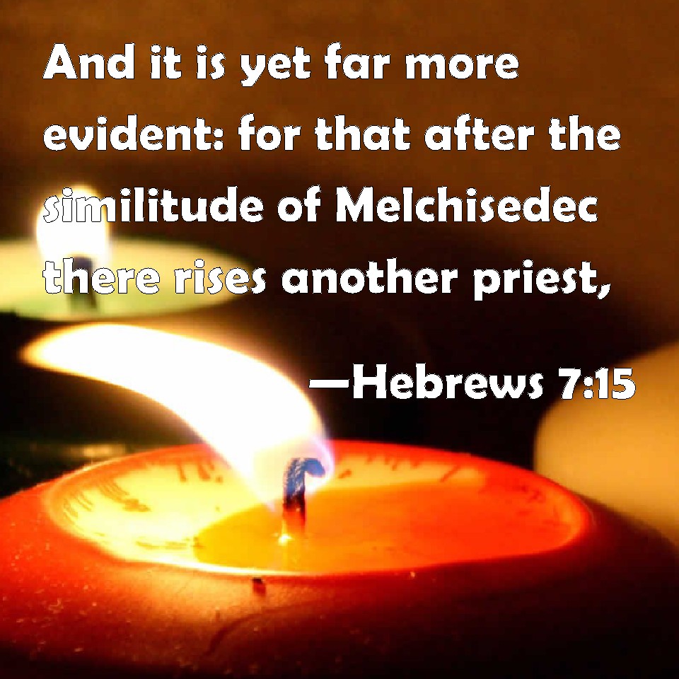 Choose a Background Hebrews 7:15 And it is yet far more evident: for that after the similitude of Melchisedec there rises another priest, KJV: And it is yet far more evident: for that after the similitude of Melchisedec there ariseth another priest, DRB: And it is yet far more evident: if according to the similitude of Melchisedech there ariseth another priest, DBT: And it is yet more abundantly evident, since a different priest arises according to the similitude of Melchisedec, ERV: And what we say is yet more abundantly evident, if after the likeness of Melchizedek there ariseth another priest, WBT: And it is yet far more evident: for that after the similitude of Melchisedec there ariseth another priest, WEB: This is yet more abundantly evident, if after the likeness of Melchizedek there arises another priest, YLT: And it is yet more abundantly most evident, if according to the similitude of Melchisedek there doth arise another priest,Links Hebrews 7:15 NIV • Hebrews 7:15 NLT • Hebrews 7:15 ESV • Hebrews 7:15 NASB • Hebrews 7:15 KJV • Hebrews 7:15 Interlinear • Hebrews 7:15 Commentaries • Hebrews 7:15 Parallel Texts • Hebrews 7:15 Bible Apps • Hebrews 7:15 Parallel • Bible Hub |