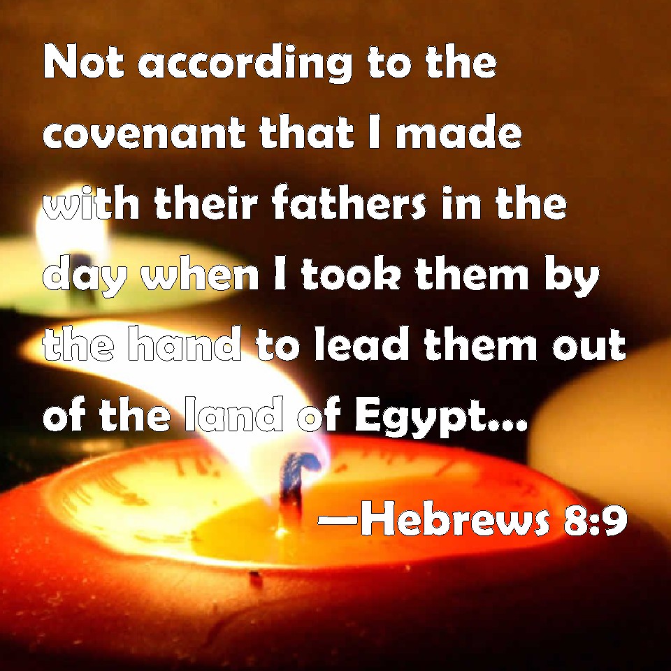 Choose a Background Hebrews 8:9 Not according to the covenant that I made with their fathers in the day when I took them by the hand to lead them out of the land of Egypt; because they continued not in my covenant, and I regarded them not, said the Lord. KJV: Not according to the covenant that I made with their fathers in the day when I took them by the hand to lead them out of the land of Egypt; because they continued not in my covenant, and I regarded them not, saith the Lord. DRB: Not according to the testament which I made to their fathers, on the day when I took them by the hand to lead them out of the land of Egypt: because they continued not in my testament: and I regarded them not, saith the Lord. DBT: not according to the covenant which I made to their fathers in the day of my taking their hand to lead them out of the land of Egypt; because they did not continue in my covenant, and I did not regard them, saith the Lord. ERV: Not according to the covenant that I made with their fathers In the day that I took them by the hand to lead them forth out of the land of Egypt; For they continued not in my covenant, And I regarded them not, saith the Lord. WBT: Not according to the covenant that I made with their fathers, in the day when I took them by the hand to lead them out of the land of Egypt; because they continued not in my covenant, and I regarded them not, saith the Lord. WEB: not according to the covenant that I made with their fathers, in the day that I took them by the hand to lead them out of the land of Egypt; for they didn't continue in my covenant, and I disregarded them," says the Lord. YLT: not according to the covenant that I made with their fathers, in the day of My taking them by their hand, to bring them out of the land of Egypt — because they did not remain in My covenant, and I did not regard them, saith the Lord, — Links Hebrews 8:9 NIV • Hebrews 8:9 NLT • Hebrews 8:9 ESV • Hebrews 8:9 NASB • Hebrews 8:9 KJV • Hebrews 8:9 Interlinear • Hebrews 8:9 Commentaries • Hebrews 8:9 Parallel Texts • Hebrews 8:9 Bible Apps • Hebrews 8:9 Parallel • Bible Hub |