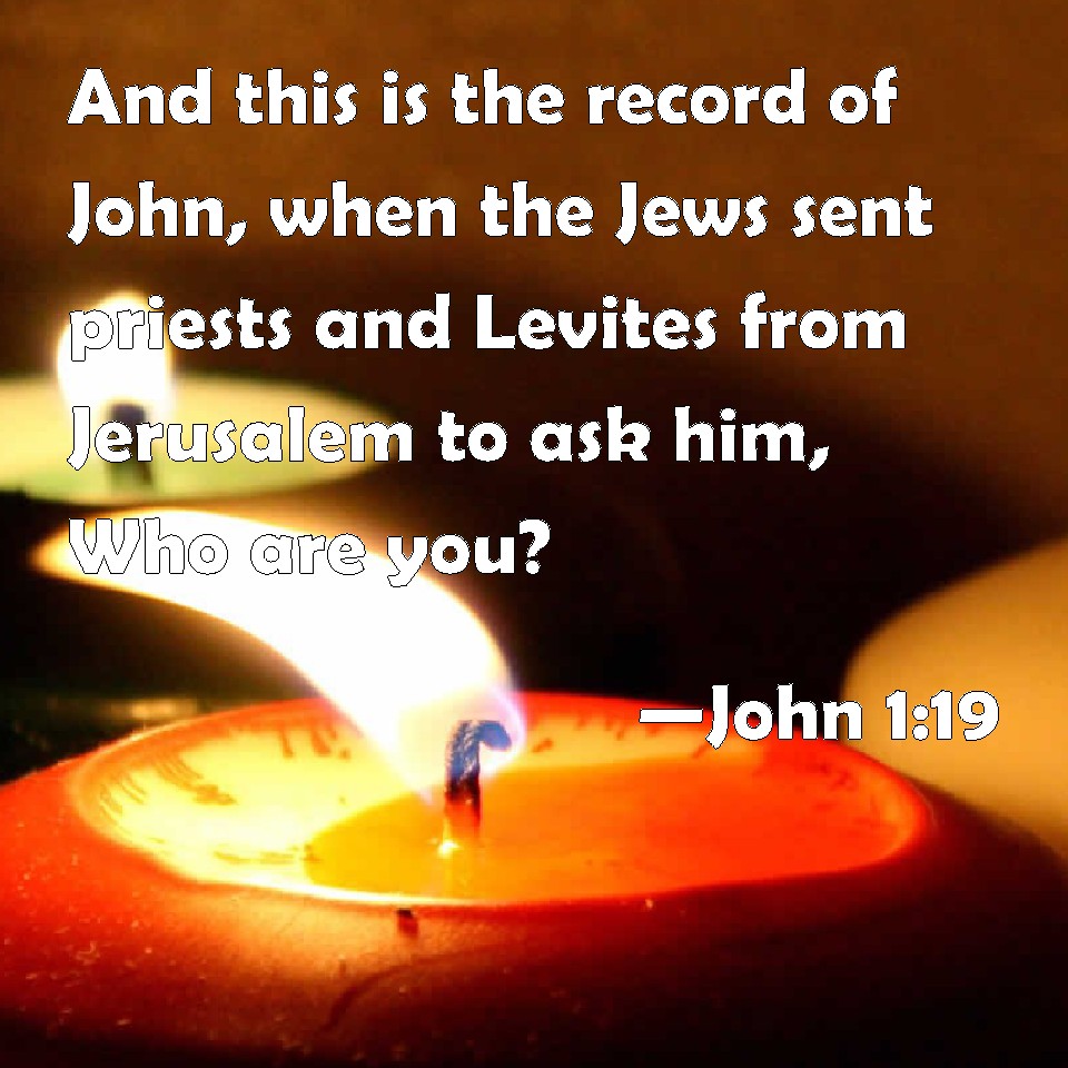 Choose a Background John 1:19 And this is the record of John, when the Jews sent priests and Levites from Jerusalem to ask him, Who are you? KJV: And this is the record of John, when the Jews sent priests and Levites from Jerusalem to ask him, Who art thou? DRB: And this is the testimony of John, when the Jews sent from Jerusalem priests and Levites to him, to ask him: Who art thou? DBT: And this is the witness of John, when the Jews sent from Jerusalem priests and Levites that they might ask him, Thou, who art thou? ERV: And this is the witness of John, when the Jews sent unto him from Jerusalem priests and Levites to ask him, Who art thou? WBT: And this is the testimony of John, when the Jews sent priests and Levites from Jerusalem, to ask him, Who art thou? WEB: This is John's testimony, when the Jews sent priests and Levites from Jerusalem to ask him, "Who are you?" YLT: And this is the testimony of John, when the Jews sent out of Jerusalem priests and Levites, that they might question him, 'Who art thou?'Links John 1:19 NIV • John 1:19 NLT • John 1:19 ESV • John 1:19 NASB • John 1:19 KJV • John 1:19 Interlinear • John 1:19 Commentaries • John 1:19 Parallel Texts • John 1:19 Bible Apps • John 1:19 Parallel • Bible Hub |