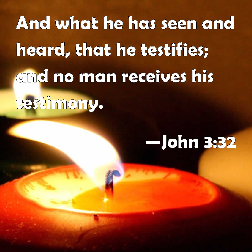 John 3:32 And what he has seen and heard, that he testifies; and no man receives his testimony.