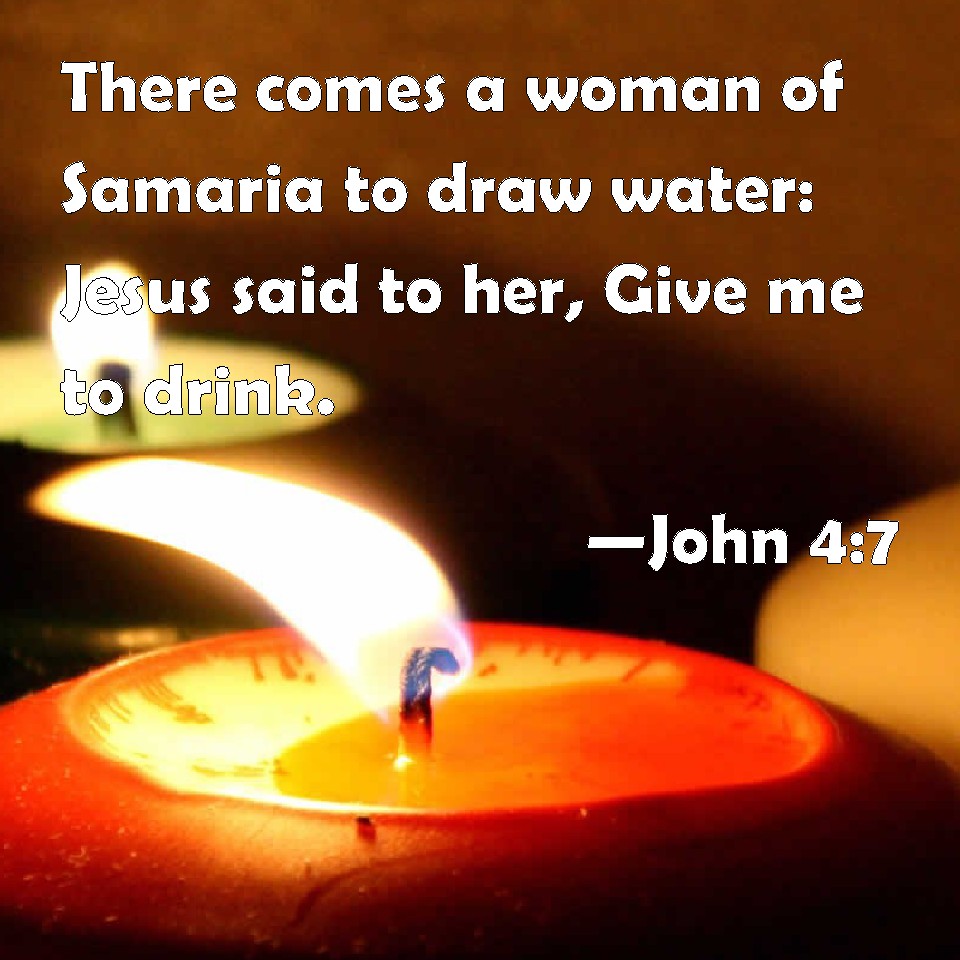 John 4:7 There comes a woman of Samaria to draw water: Jesus said to her, Give me to drink.