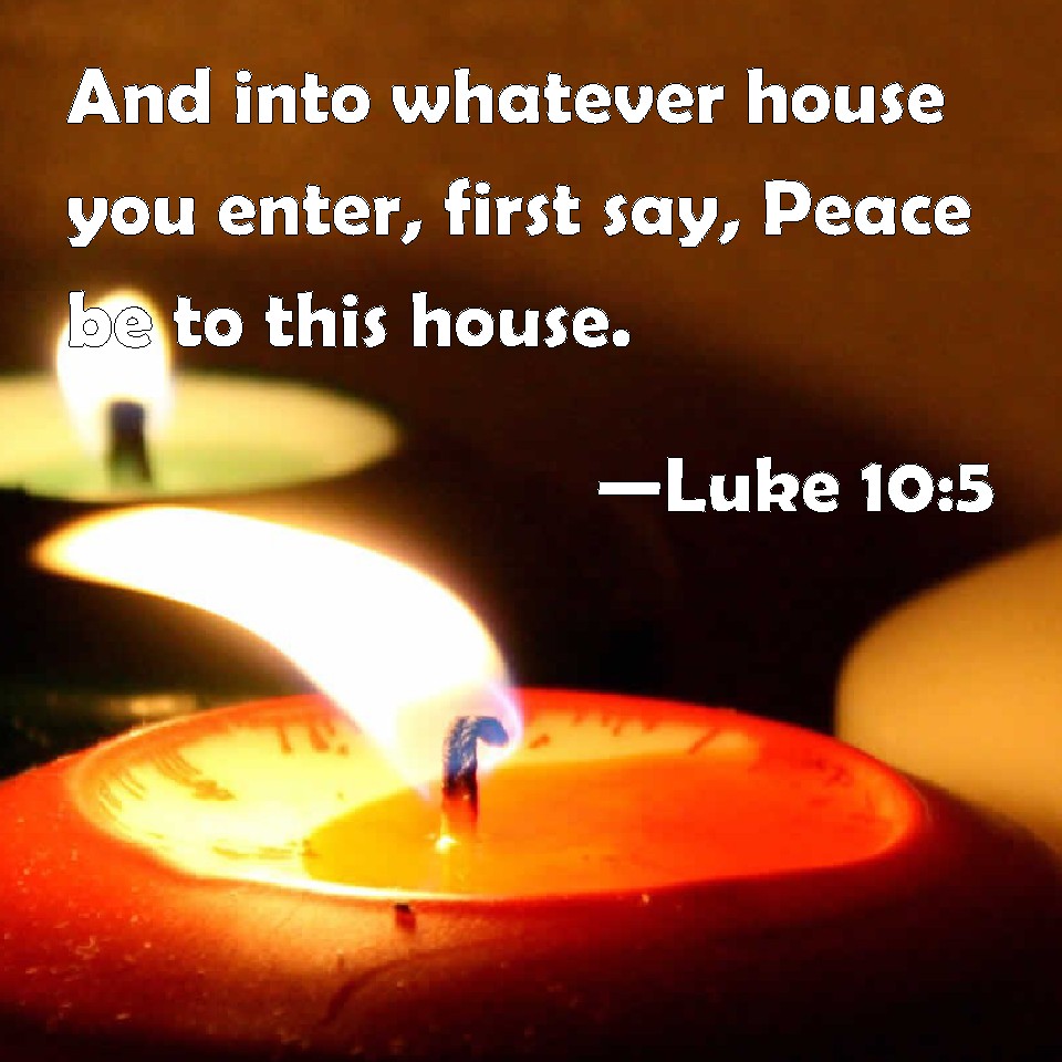 Choose a Background Luke 10:5 And into whatever house you enter, first say, Peace be to this house. KJV: And into whatsoever house ye enter, first say, Peace be to this house. DRB: Into whatsoever house you enter, first say: Peace be to this house. DBT: And into whatsoever house ye enter, first say, Peace to this house. ERV: And into whatsoever house ye shall enter, first say, Peace be to this house. WBT: And into whatever house ye enter, first say, Peace be to this house. WEB: Into whatever house you enter, first say, 'Peace be to this house.' YLT: and into whatever house ye do enter, first say, Peace to this house;Links Luke 10:5 NIV • Luke 10:5 NLT • Luke 10:5 ESV • Luke 10:5 NASB • Luke 10:5 KJV • Luke 10:5 Interlinear • Luke 10:5 Commentaries • Luke 10:5 Parallel Texts • Luke 10:5 Bible Apps • Luke 10:5 Parallel • Bible Hub |